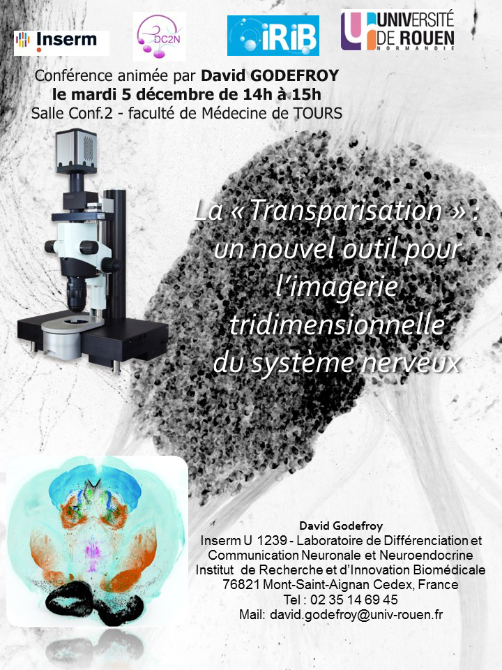 Nous vous invitons à assister à la conférence de David Godefroy (Inserm U 1239 - Mont-Saint-Aignan - Laboratoire de Différenciation et Communication Neuronale et Neuroendocrine - Institut de Recherche et d'Innovation Biomédicale)
